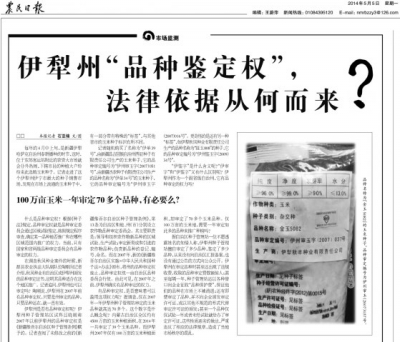 编者按:今年4月30日和5月5日,农民日报分别以《暗访伊犁种子市场》和《伊犁州品种鉴定权法律依据从何而来》为题报道了伊犁州种子市场存在的套牌侵权、非法审定乱象,随着打假力度加大,媒体关注度渐强,伊犁州种子市场秩序有了明显改善。日前,伊犁州打假又有新动作,此举既是此前系列工作的继续也是更加强有力打假行动的开始