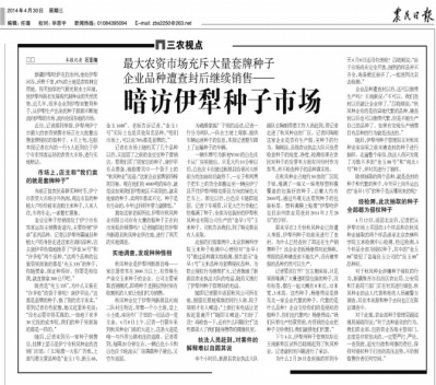 “要规范种子市场,就得从源头加强监管。”今年6月,本报与中国种子协会在京举办种子企业联合维权座谈会,不少种企负责人提出应加强对制种基地的监管,从源头杜绝非法种子流入市场。